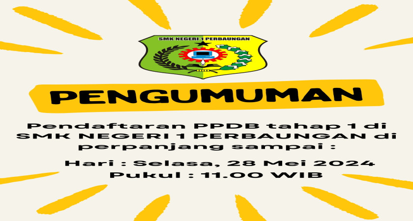 Pendaftaran PPDB Tahap 1 di SMK NEGERI 1 PERBAUNGAN di perpanjang sampai :
