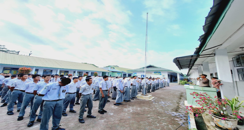 Siswa/i SMK Negeri 1 Perbaungan melaksanakan upacara memperingati Hari Pramuka ke 64.